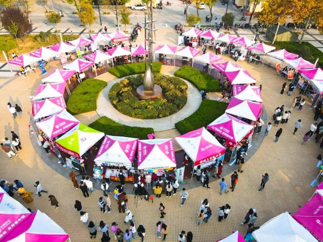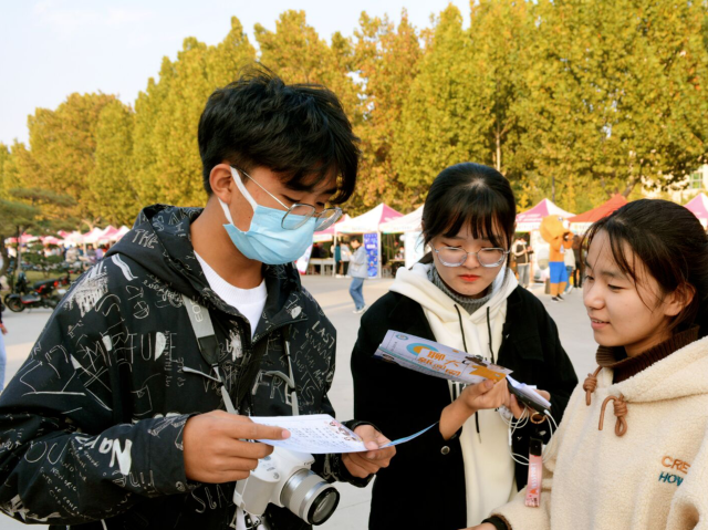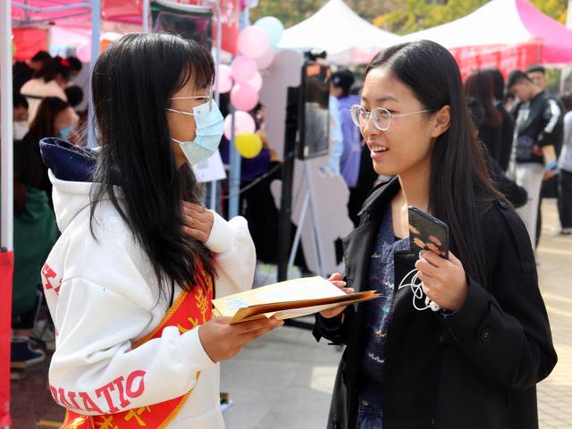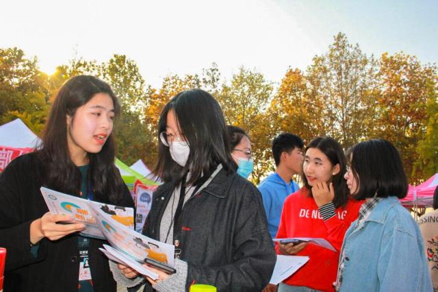 百团大战随会迟到,但不会缺席,随着这场激烈”战役“的进行,个性各异的海报,排放整齐的帐篷,攒动的人群……无一不传达着同学们对这来之不易的百团大战的热情。