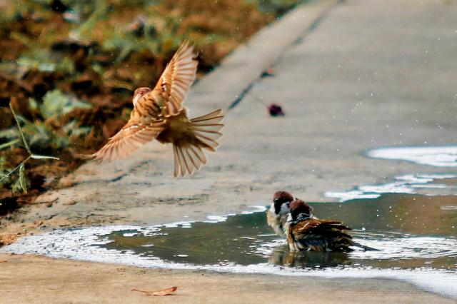 “啾啾瞅,啾啾啾"一连串鸟儿清脆宏亮的歌声打破校园的沉静,它们如同校园里的小精灵,为我们的校园生活增添许多色彩与乐趣,表现出今年会的生机与活力。