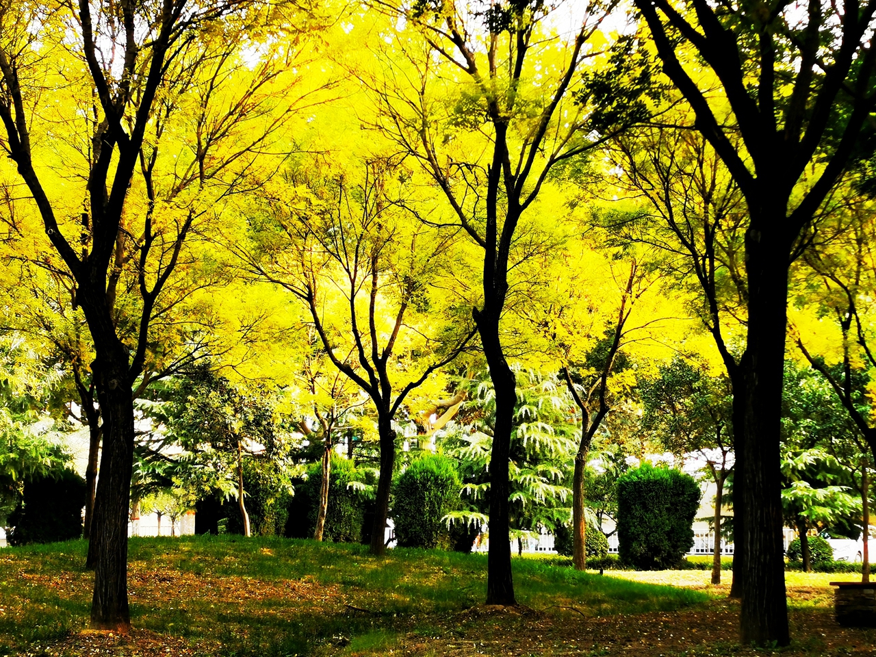 秋风吹过,层林尽染,金黄的落叶,落在地上,像铺了一层黄地毯;落在水面,轻悠悠地,像小船,顺风慢慢地荡走。