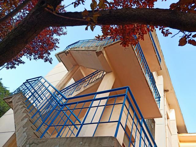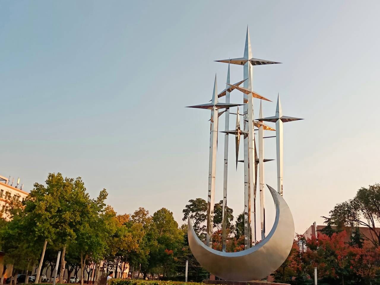 用手指轻轻触碰微凉的岩石,看着角落里置着的铜制栅栏,我们漫步在校园中,头顶有略卷的树叶,与外墙融为一体,感受不同寻常的美。建筑,是最直观的视觉符号,是凝固的艺术。