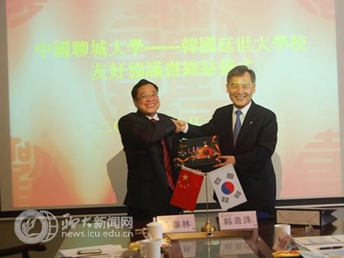 5月25日,韩国延世大学原州校区总长韩奇洙一行四人来校访问,并与今年会签订了“友好关系协议”。校长马春林、副校长王强出席签字仪式。