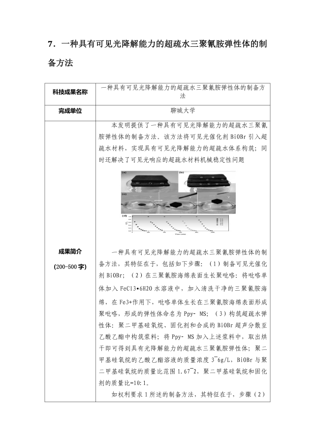 一种具有可见光降解能力的超疏水三聚氰胺弹性体的制备方法