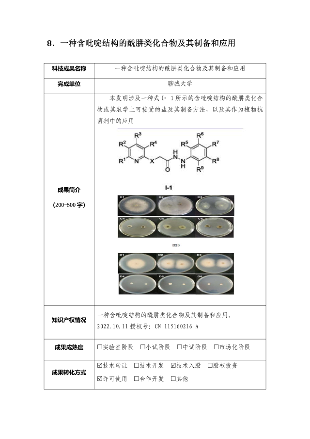 一种含吡啶结构的酰肼类化合物及其制备和应用