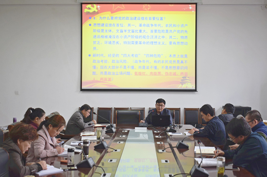 为进一步推进学校“不忘初心、牢记使命”主题教育取得实效,10月17日,政治与公共管理学院教授邹庆国于东校区6#C101以《党的政治建设的学思践悟》为题作了报告,政治与公共管理学院全体党员教师参加此次报告会,报告会由党总支副书记、副院长季昌伟主持。