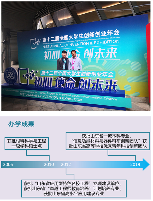学院十分重视学科建设和学位点建设,根据社会经济发展的需要和材料科学与工程学院的目标定位,科学制定了学科建设的总体规划;结合材料学科的发展布局和学院的师资、设备情况,将学科建设作为一项系统工程来抓,采取了强有力的措施,抓重点促特色。经过努力,按照“凝聚科研人才、精炼科研方向、争取重大科研课题”的科研工作思路,初步形成了信息功能材料与器件、新能源与环境材料、功能高分子材料、有色金属新材料四个学科团队,逐步形成了相对稳定的科研方向。获批一个山东省高等学校优秀青年创新团队和高性能铜基合金制造技术协同创新中心、今年会官方网站培育学术特区“有色金属材料绿色冶金及深加工研究所”两个校级团队;碳纤维复合材料科研团队与外校合作取得突破。邀请国内外专家学者来校开展学术交流会20余次,组织教师参加省内外学术交流会议60余次,开阔了视野,提升了学术水平。“十三五”期间学院科研的数量、质量都有了较大幅度的提升,共获批国家级项目10项,其中国家自然科学青年基金9项,国家863子课题1项,省部级项目27项,厅局级项目3项,横向项目18项;获批纵向经费700余万元,横向经费240余万元;发表学术论文280余篇,其中SCI 收录250余篇;获授权专利49项,软著4项;材料科学ESI排名进入全球前1%、;荣获山东省高等学校科学技术奖6项,校级优秀科研成果奖17项;荣获山东省自然科学三等奖1项,实现了学院在省部级科研奖励上的突破。