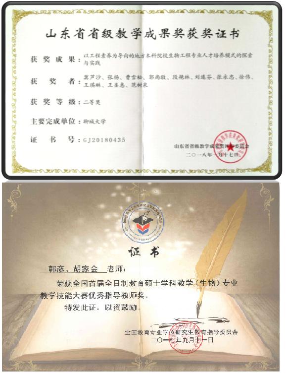 “十三五”期间,生物科学和生物工程两个专业获批山东省高水平应用型立项建设专业,生物科学专业获批山东省一流本科专业建设点;获省级教学改革项目7项,获省级教学成果奖2项,省一流本科课程1门,在线课程10门,立项编写教材2部,发表教研论文60余篇;积极推进课堂教学改革,加强课程思政教育,实行小班上课制,推行多维课堂教学模式,建立了虚拟仿真显微网络教室和虚拟仿真实训中心,推动了信息技术与教育教学深度融合;建立“四位一体”的创新实践平台,促进了学生全面发展和个性成长。重视国际交流与中外合作教育,与爱尔兰都柏林理工大学开展国际合作培养博士学位研究生,招收留学生10余人;建立了教学质量管理和监控体系,全方位全过程保障人才培养质量。