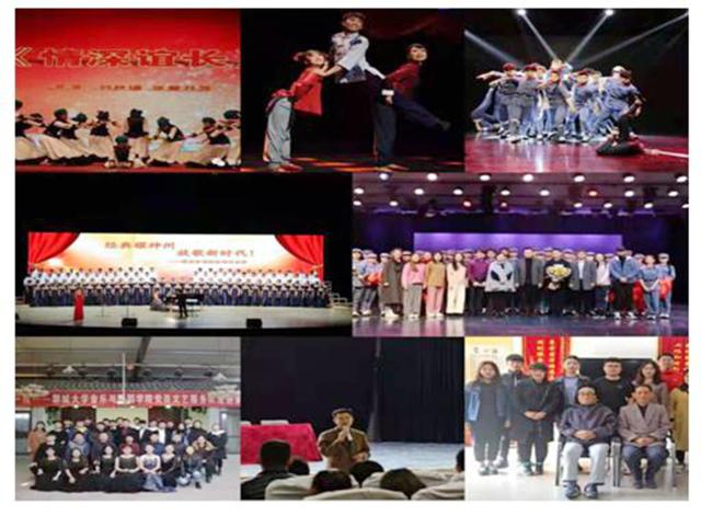 学院持续推进“百场微演走一线”“红色文艺轻骑兵”等专项活动开展。师生排演的舞蹈《永远的川军》《情深谊长》,合唱《黄河大合唱》,原创先锋舞剧《红色长征精神》等均受到广泛好评;青年教师查姣姣和学生宁斌以男女主角身份参加红色舞剧《乳娘》巡演,受到各界一致好评,查姣姣获评山东文化艺术“优秀演员”,主讲的“乳娘精神”主题党课登上《学习强国》平台。