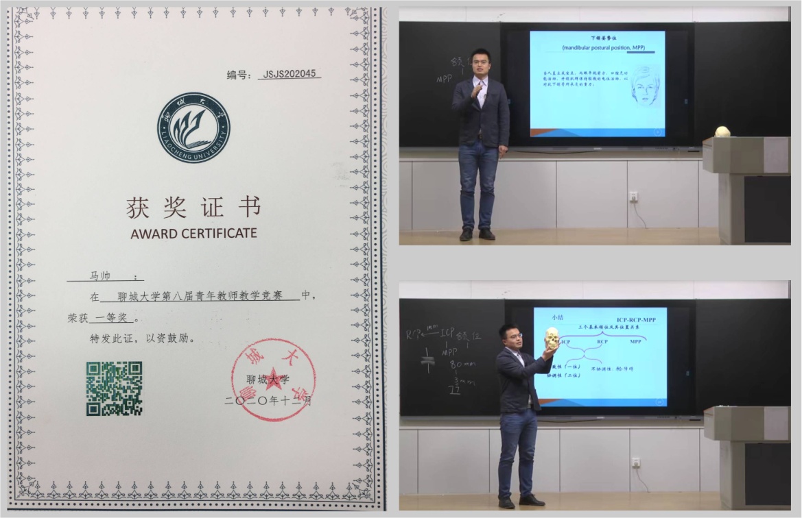 医学院现有专任教师9人,均为近三年新引进入职。新进教师通过报考高校教师资格证考试、参加学校组织的教学工作坊等培训学习,以及具体的授课实践,已完成从学生到讲师、从课堂到讲台的转变。学院首次推荐教师马帅参加学校青年教师课堂教学竞赛,就获得一等奖。