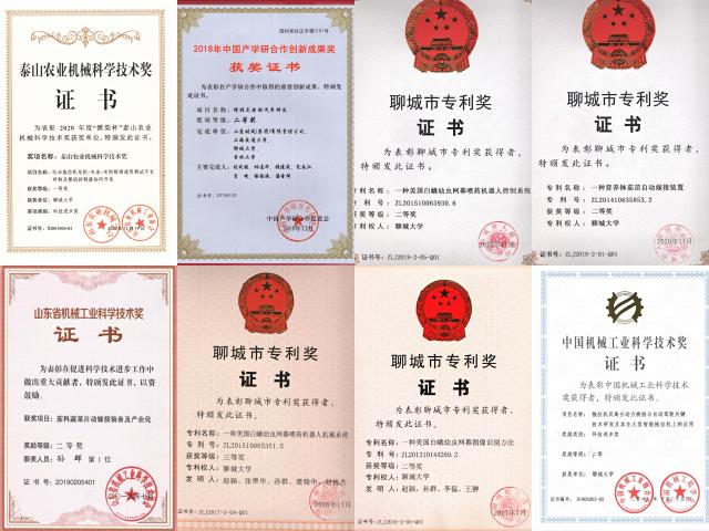学院获得中国机械工业科学技术进步二等奖、中国产学研合作创新成果二等奖、山东省机械工业科技进步二等奖、泰山农业机械科技进步一等奖、聊城市专利奖4项。