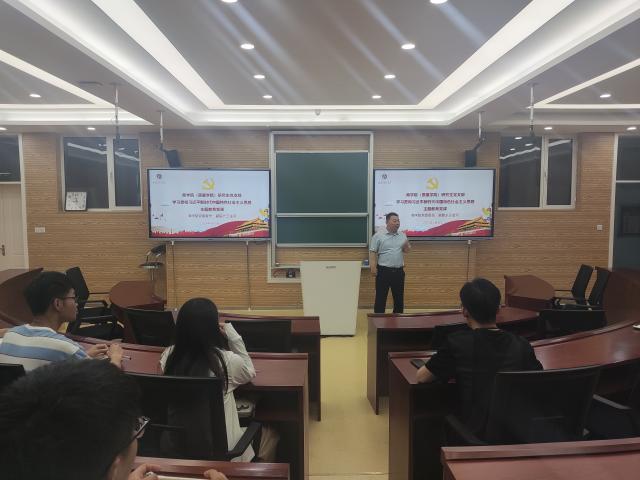 为进一步学习贯彻习近平新时代中国特色社会主义思想,在强化理论学习中推动主题教育走深走实。6月9日上午,商学院(质量学院)于东校区1#708举办学习贯彻习近平新时代中国特色社会主义思想主题教育党课。本次党课由商学院党委委员、副院长王金河主讲,应用经济学专业研究生全体党员和入党积极分子参加。