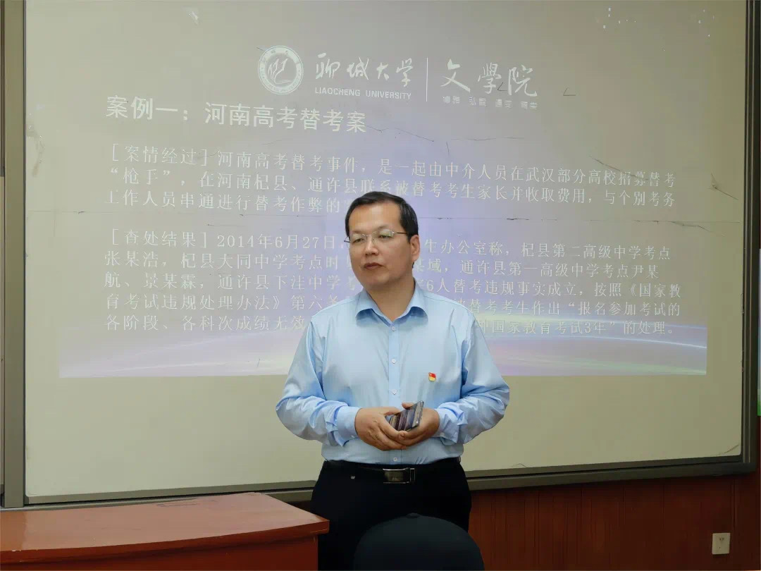 以法入心,公正高考。各班主任带领学生深度解读高考替考的真实案例及其处理结果,结合各类违纪舞弊事件,帮助学生充分认识参与高考作弊对自身、对社会的严重危害性和高度危险性,同时根据相关法律法规明确指出替、代考已入刑定罪,提醒学生强化法律意识,共同抵制任何舞弊行为,致力营造风清气正的高考环境,努力让广大考生享有更加公平、更有质量的高等教育。各班主任强调,文学院学生应端正考风,对替考说“不”,坚决不触碰法律底线,坚守诚信道德底线。