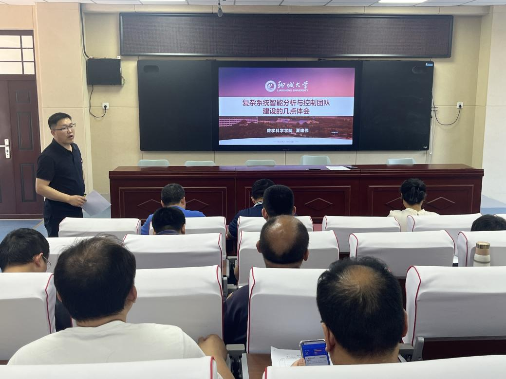 夏建伟分别从新发展阶段、新发展理念、新发展格局和学院工作计划四个方面展开详细讲述。他强调,从理论和实践中深入理解新发展阶段、新发展理念、新发展格局具有重大理论与现实意义,全体教师党员要深刻理解、学懂弄通,并在实践中自觉推进。同时,他从多方面阐述了学院的工作计划,明确了教工党支部的主要职责,要求全体教工党员强化使命担当,充分发挥教工党员的先锋模范作用,持续抓好个人自学,为师生树标杆作表率,把主题教育学习成果转化为推动学院建设和教育事业高质量发展的强大动力,以实际行动在各自岗位上建功立业。最后,他分享了所在团队—复杂系统智能分析与控制团队建设的几点体会,希望与各位教工党员共勉,凝心聚力,与时代同步伐、与学院齐发展,为推动学院高质量发展提交满意答卷。