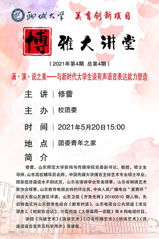博雅大讲堂2021年第4期:诵·演·说之美——与新时代大学生谈有声语言表达能力塑造