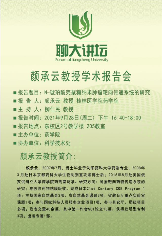 聊大讲坛——颜承云教授学术报告会