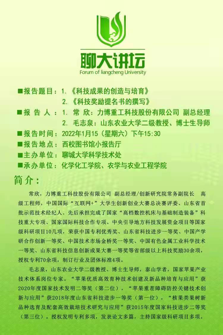 聊大讲坛——毛志泉教授、常欣副总经理学术报告会