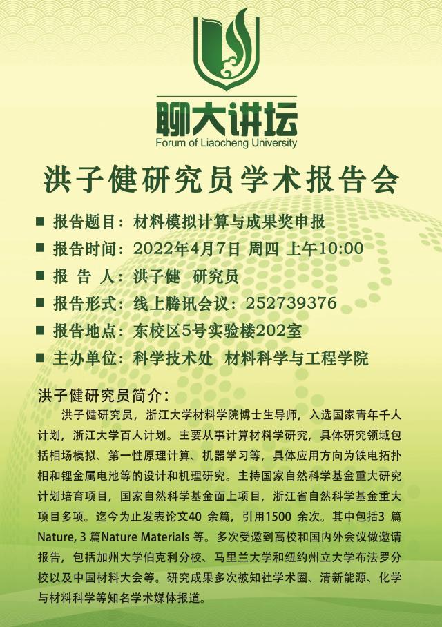 聊大讲坛——洪子健研究员学术报告会