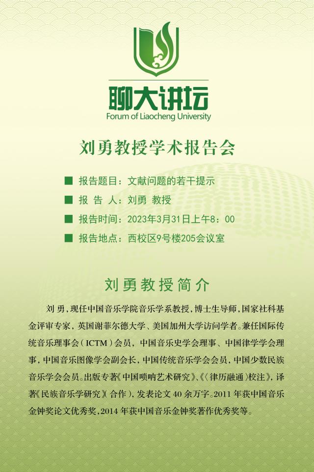 聊大讲坛——刘勇教授学术报告会