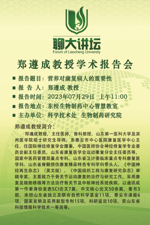 聊大讲坛——郑遵成教授学术报告会