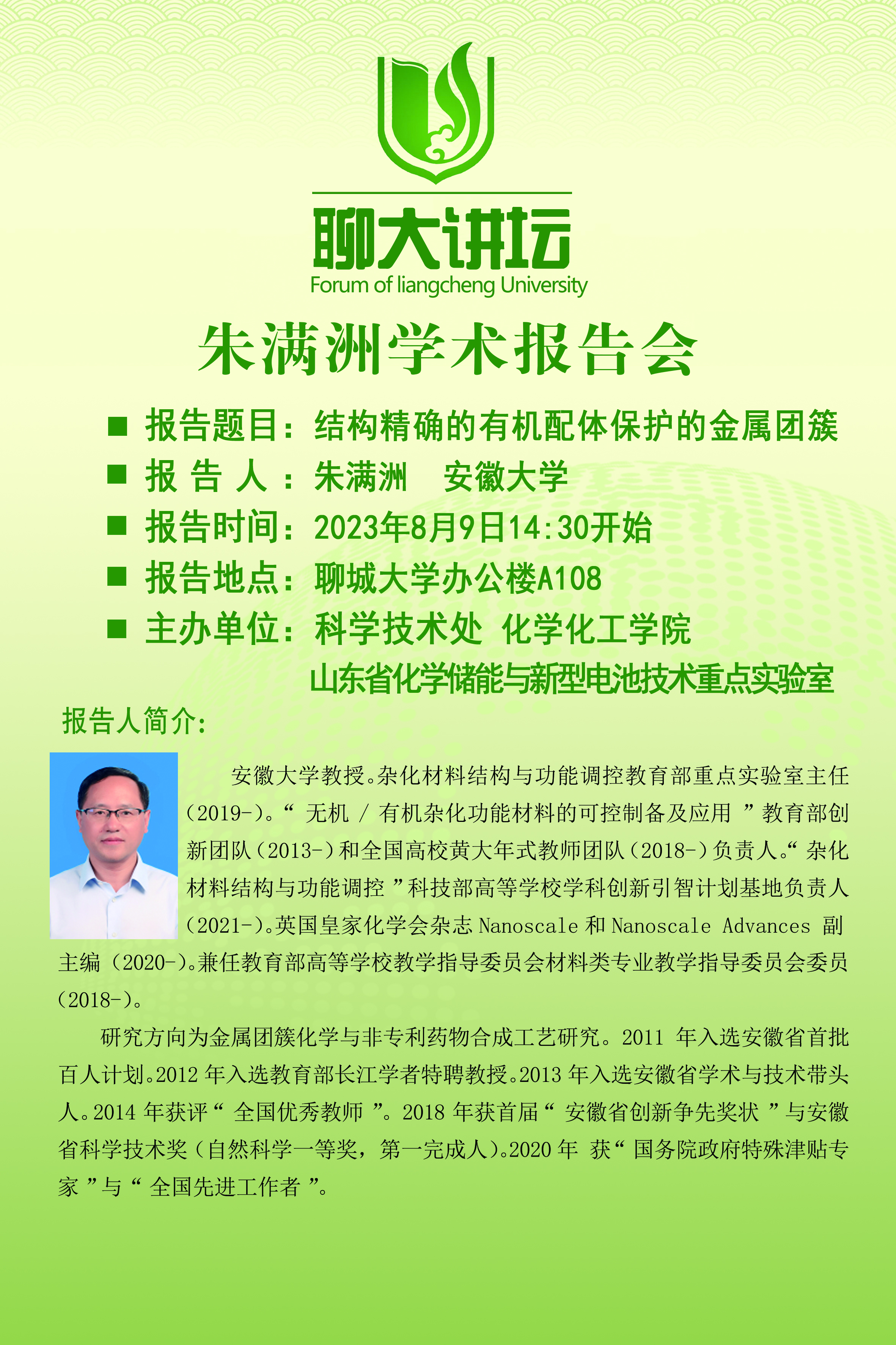 聊大讲坛——朱满洲教授学术报告会
