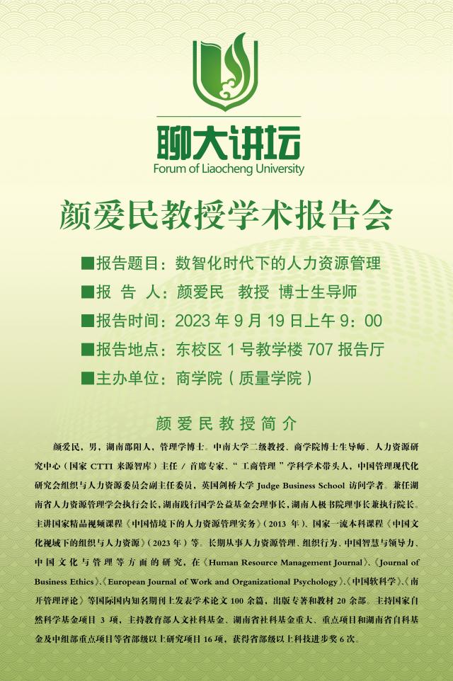 聊大讲坛——颜爱民教授学术报告会