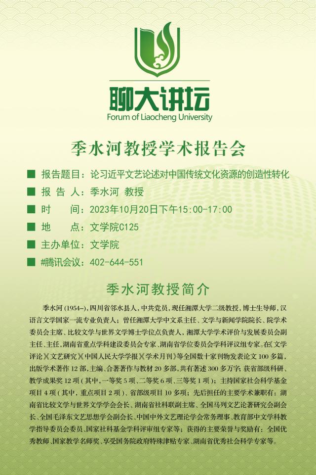 聊大讲坛——季水河教授学术报告会