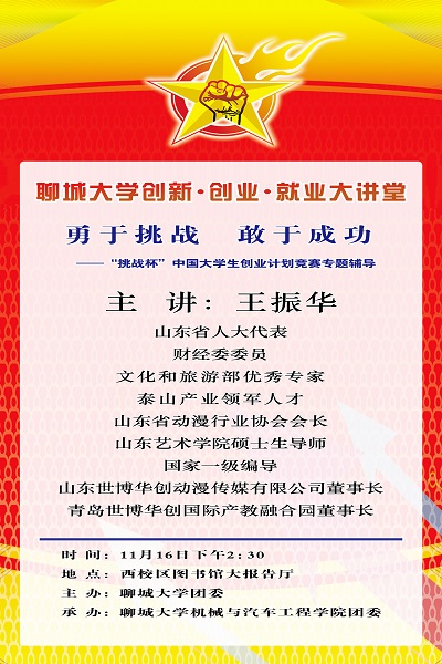 创新·创业·就业大讲堂—“挑战杯”中国大学生创业计划竞赛专题辅导