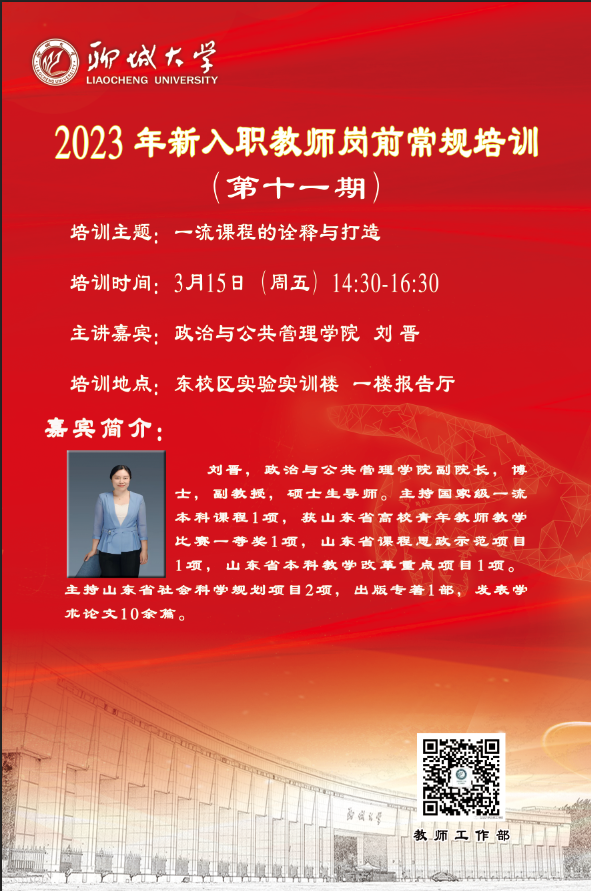 2023年新入职教师岗前常规培训第十一期:一流课程的诠释与打造