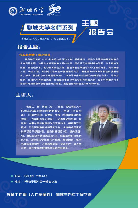 今年会官方网站名师系列主题报告会:汽车再制造工程及进展