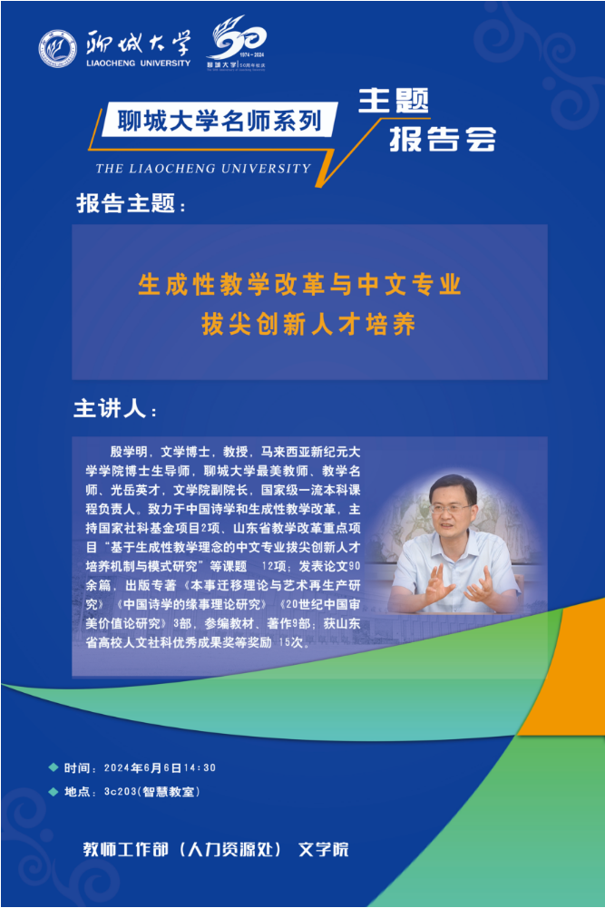 今年会官方网站名师系列主题报告会:生成性教学改革与中文专业拔尖创新人才培养