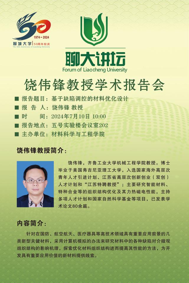 聊大讲坛——饶伟锋教授学术报告会