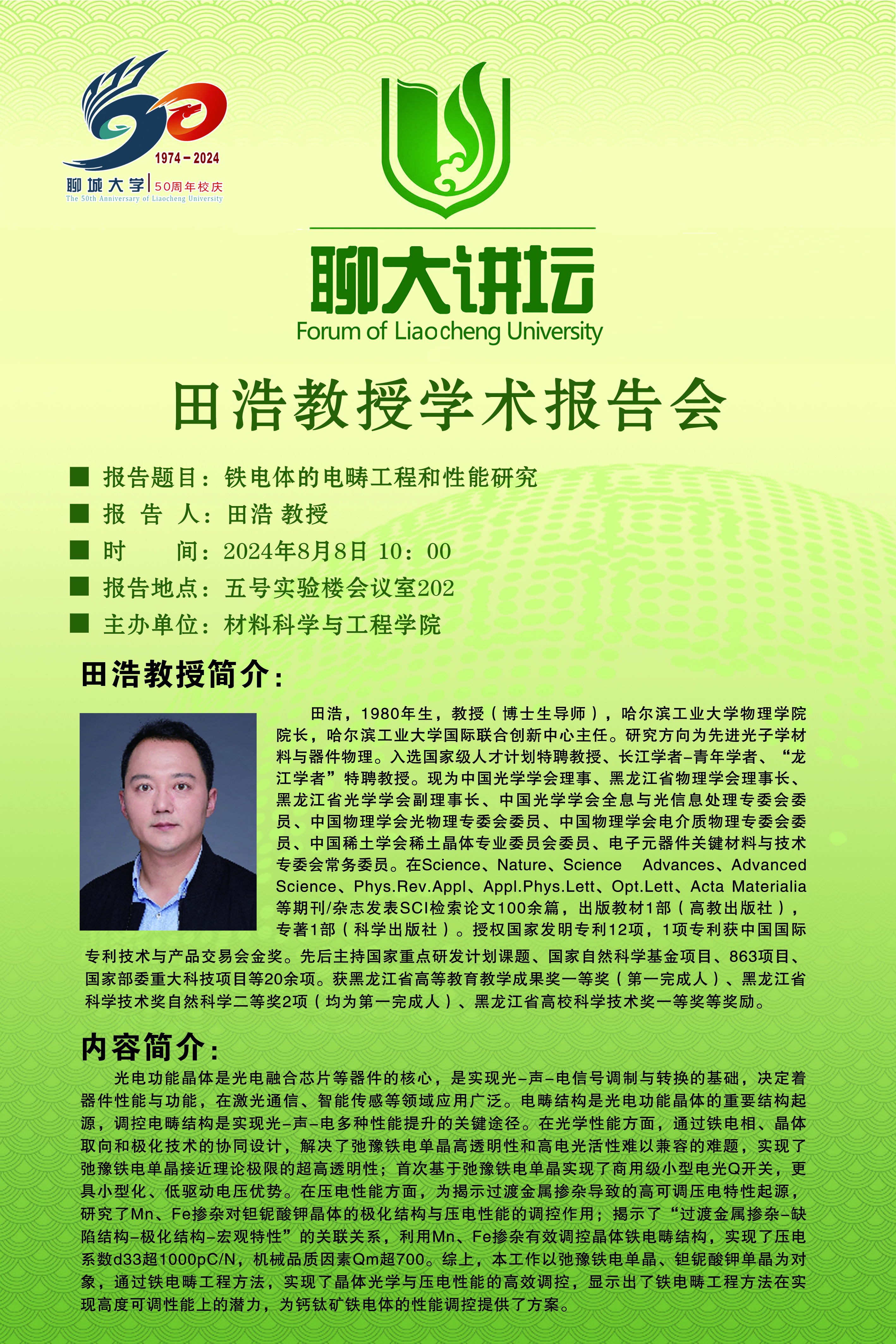 聊大讲坛——田浩教授学术报告会