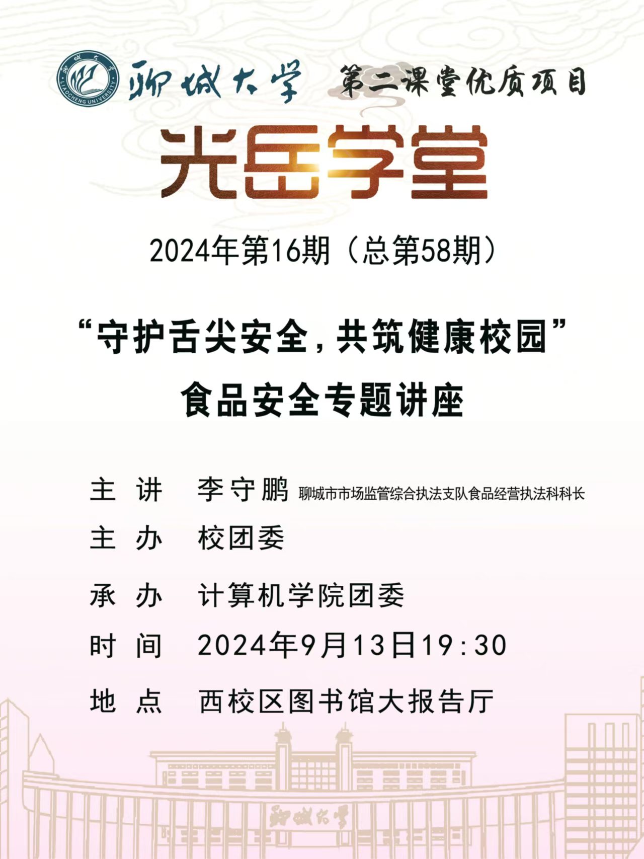 主讲人 : 李守鹏 聊城市市场监管综合执法支队食品经营执法科科长