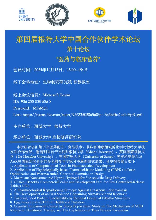 第四届根特大学中国合作伙伴学术论坛——第十论坛:医药与临床营养