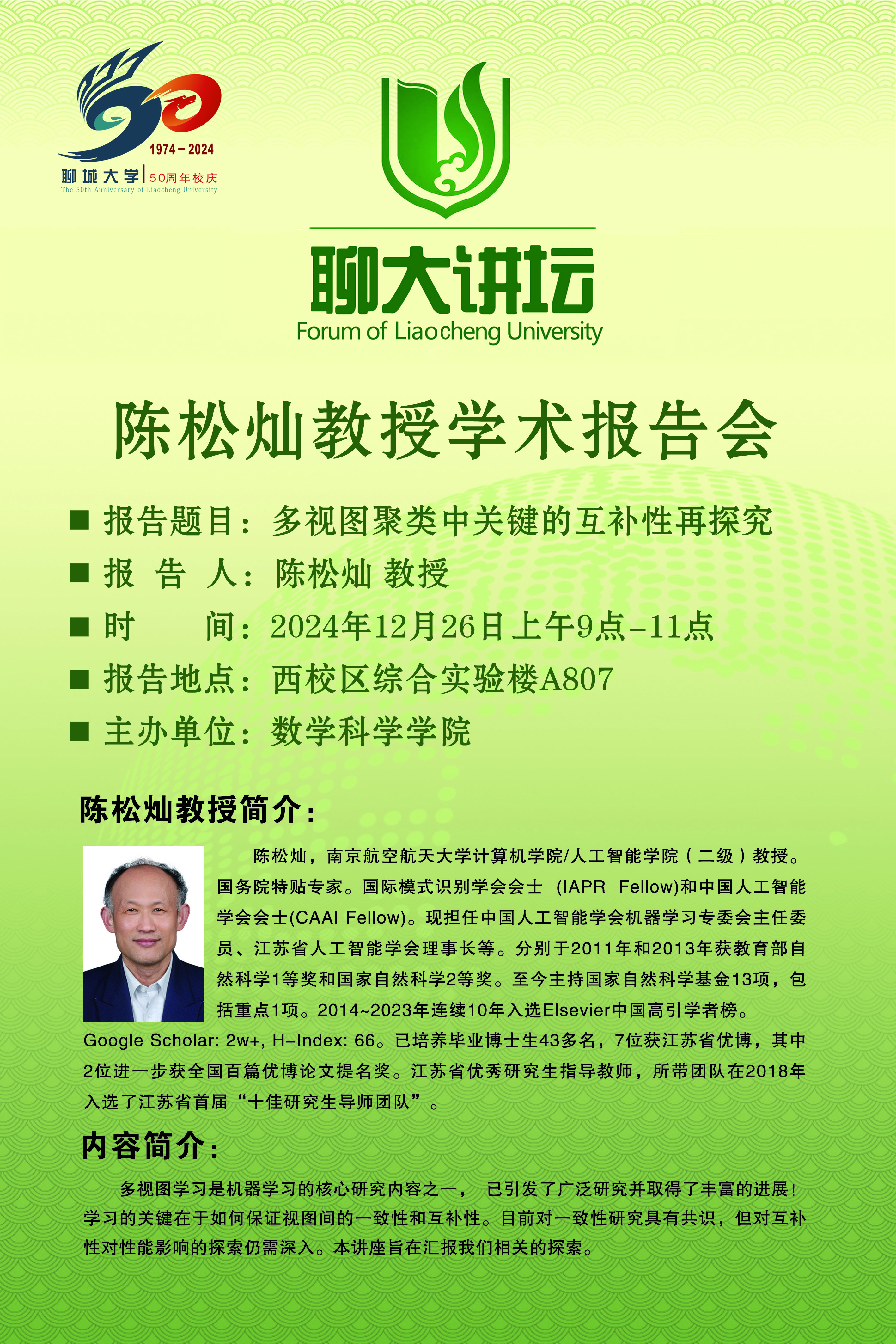 聊大讲坛——陈松灿教授学术报告会