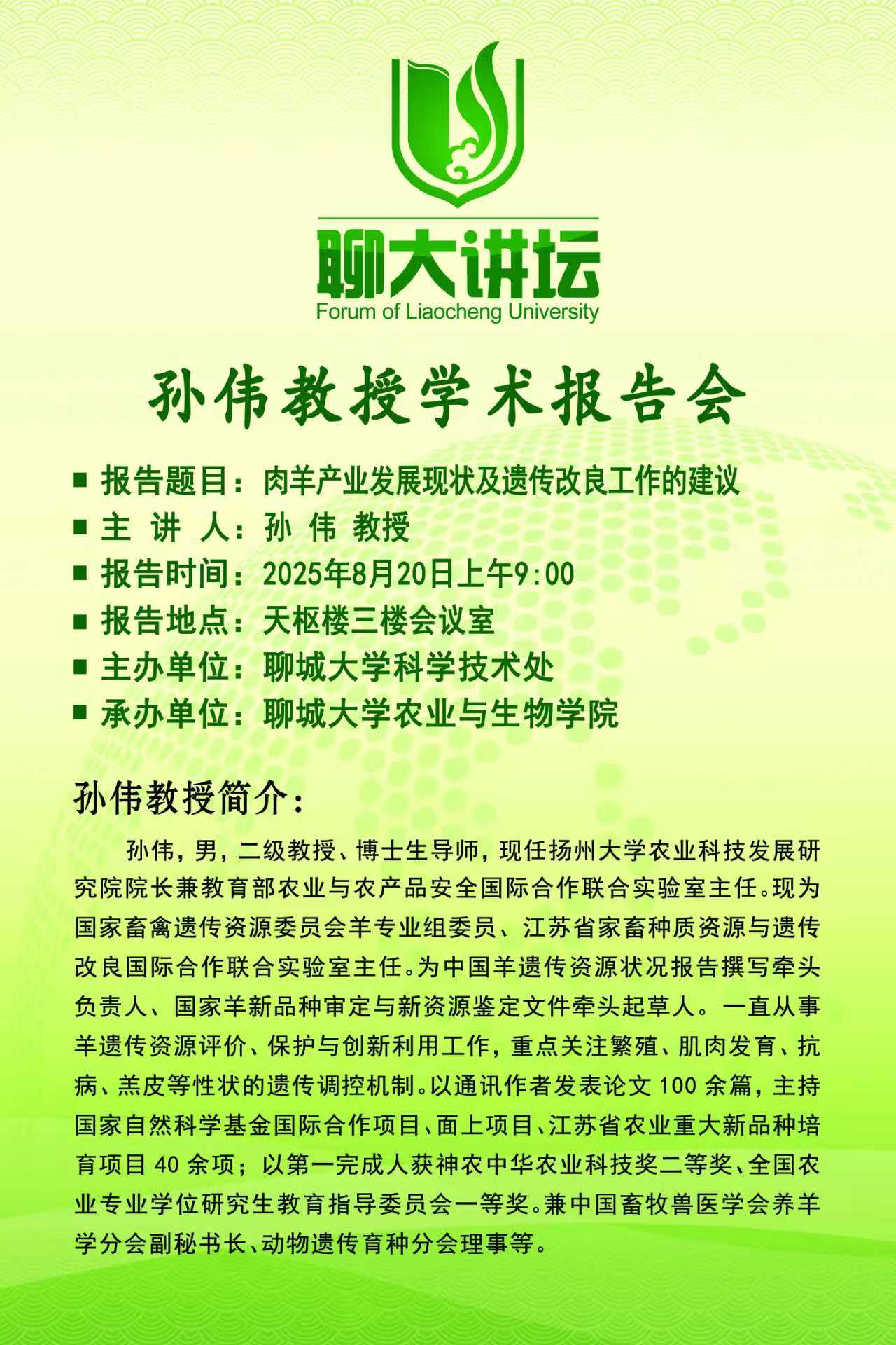 聊大讲坛——孙伟教授学术报告会