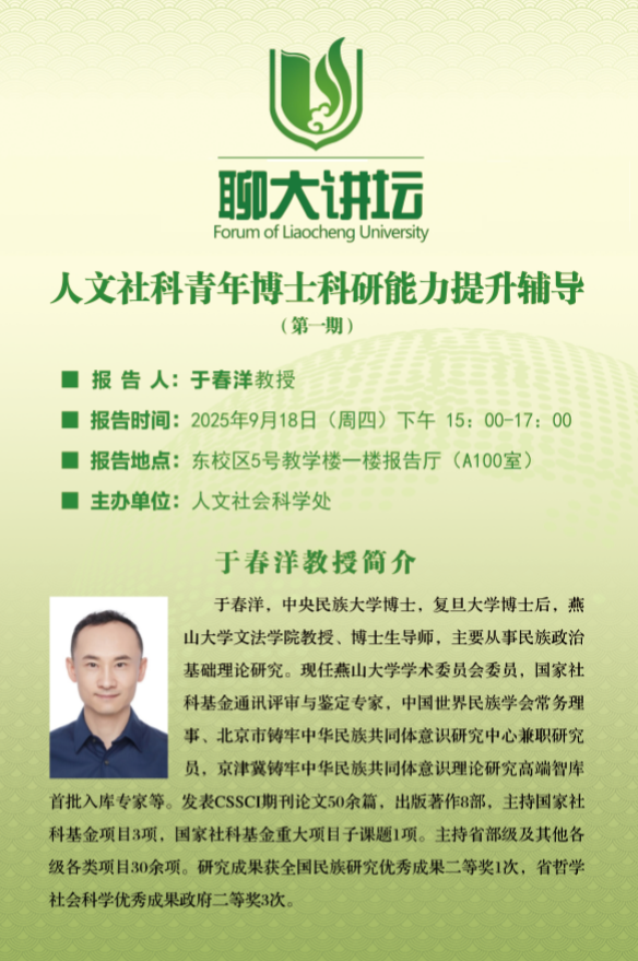 聊大讲坛——人文社科青年博士科研能力提升辅导(第一期)