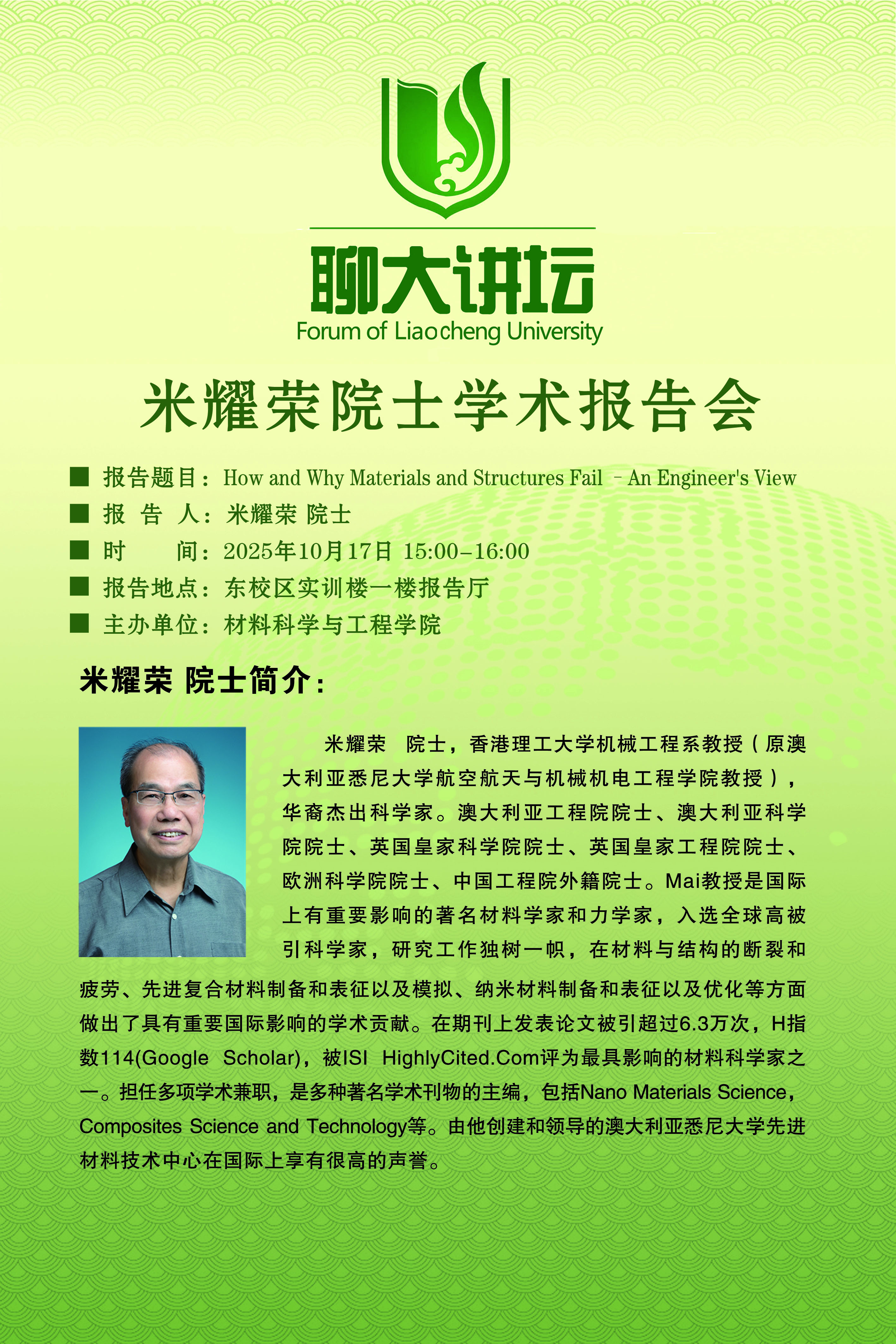 聊大讲坛——米耀荣院士学术报告会