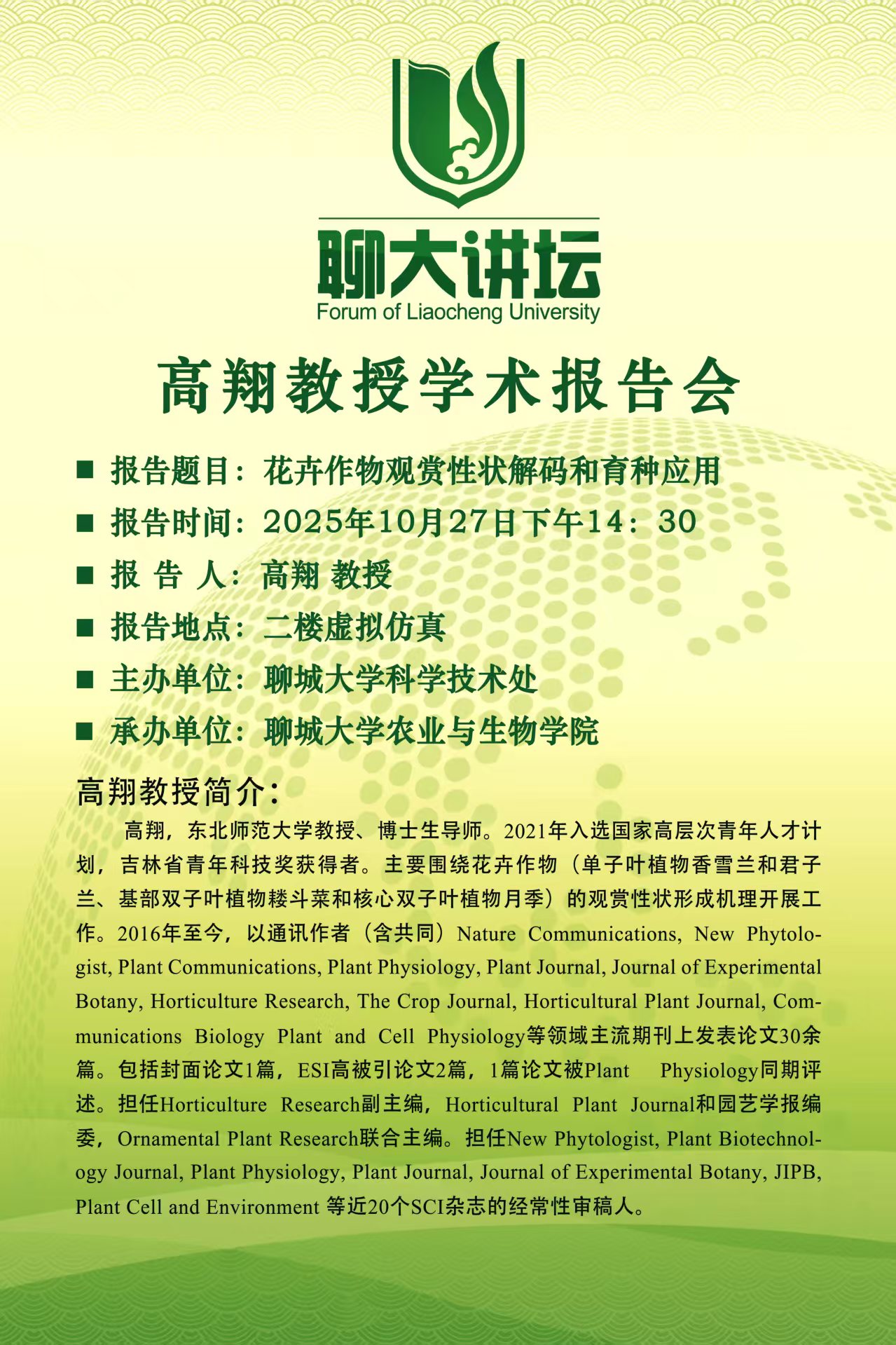 聊大讲坛——高翔教授学术报告会