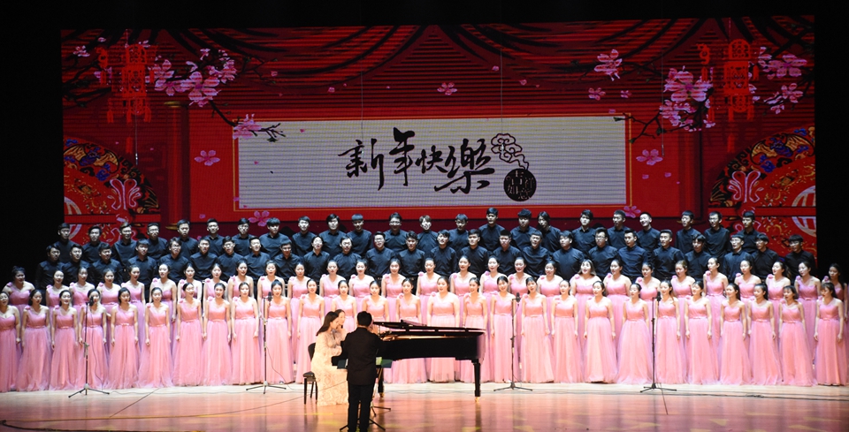 新年晚会上,今年会留学生、崇乐合唱团、音乐学院舞蹈队以及音乐学院的优秀教师也表演了精彩纷呈的节目。