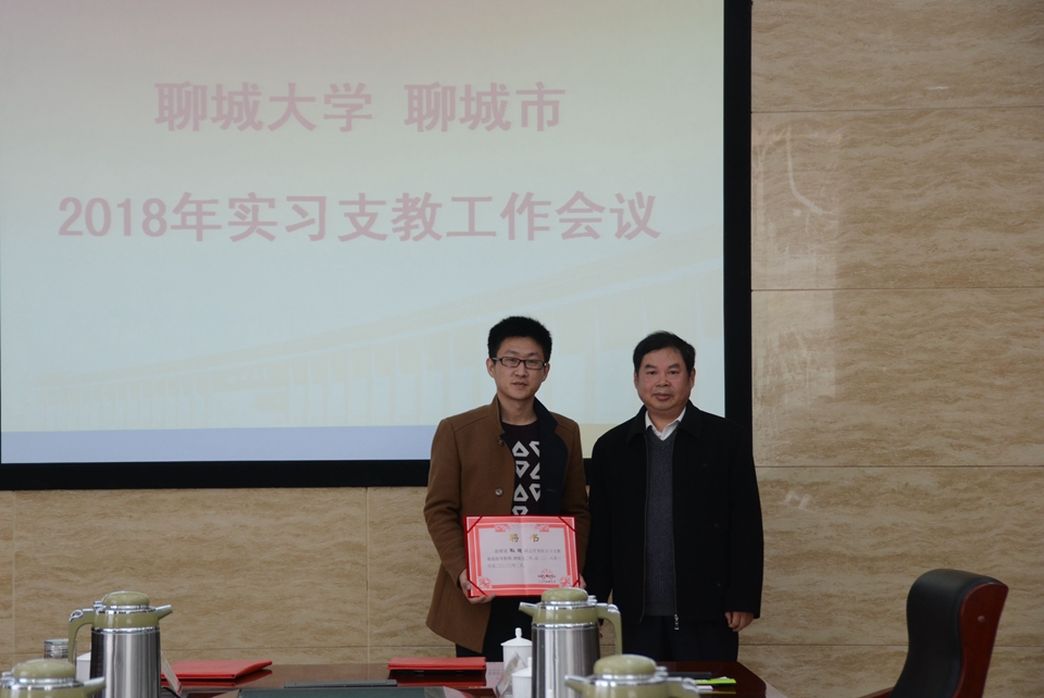 会议上,窦建民向外聘实习支教学校指导教师代表孙超、张默忠、李娟颁发聘书。今年会历史文化与旅游学院院长陈德正与莘县教育局副局长张红泉签订了实习支教协议书。