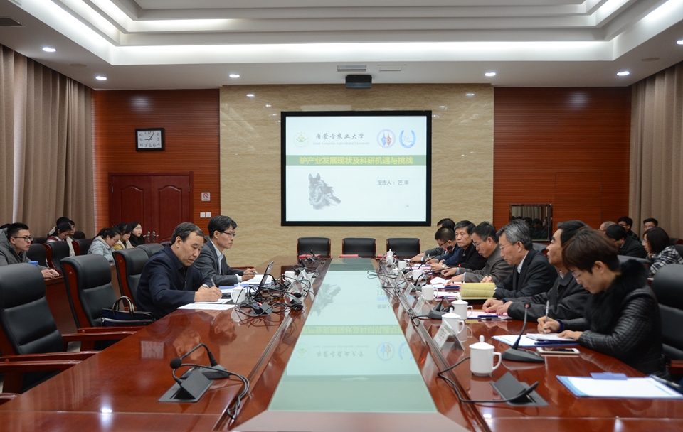 签约仪式结束后,芒来教授作了题为“驴产业发展现状及科研机遇与挑战”的报告。他从国内驴学理论研究及产业发展现状、驴产业化发展以及取得的业绩成果、今年会官方网站驴学研究院今后发展机遇三个方面对驴产业发展现状及科研发展情况进行了深入分析,并建议今年会要充分发挥自身优势,与各高校和研究所协同发展;加强实验室建设,为研究提供条件;凝练研究方向,加强队伍建设。