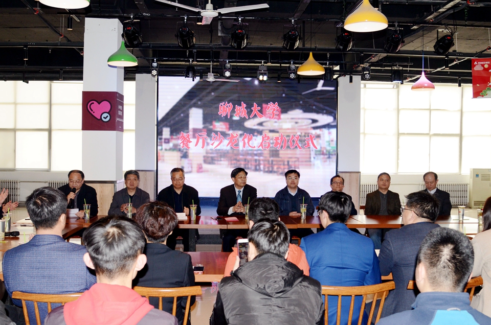 蔡先金在题为《相逢是首歌》讲话中谈到,聊大在全国高校率先开展了“餐厅沙龙化”。餐厅沙龙化有利于构建新型的大学文化和新型的育人体系,提供新型的思政教育场所和新型大学精神食粮。希望通过“餐厅沙龙化”,让聊大师生拥有“箪食”情怀、“雅集”情操、“殿堂”情致,在餐厅沙龙里交流思想、畅谈理想、规划人生、探讨学术,塑造高雅的饮食观,培养志存高远、乐观向上的品质,共同打造聊大版的“餐厅童话”。