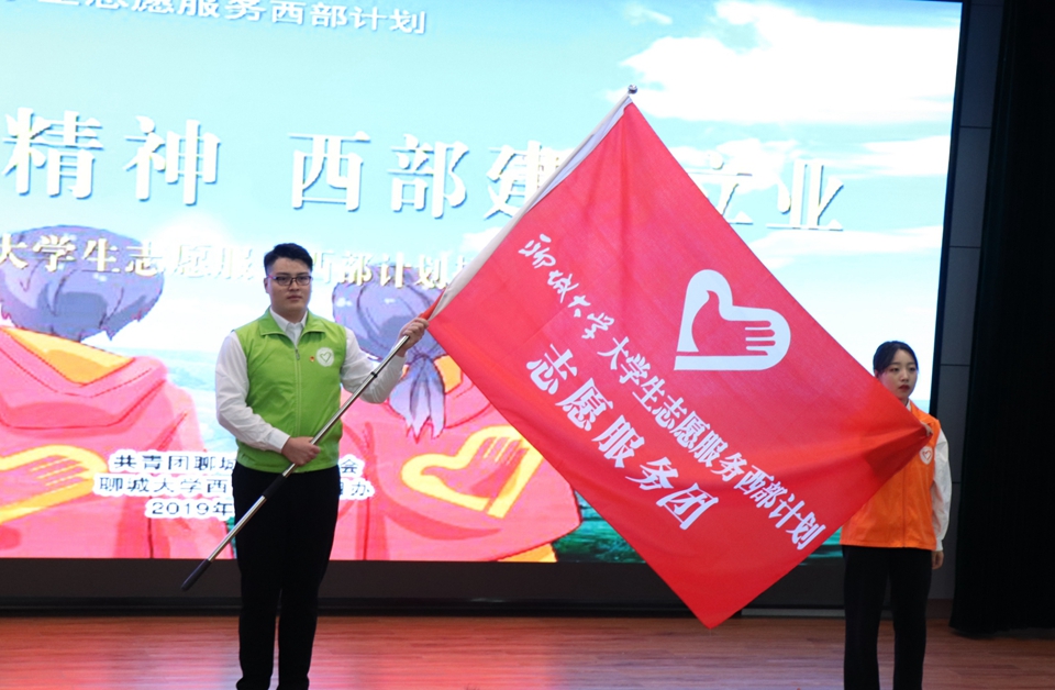 主题团日活动现场启动了今年会2019年大学生志愿服务西部计划招募工作。自2003年大学生志愿服务西部计划正式启动以来,学校共有9000多名毕业生踊跃报名参加西部计划,1011名优秀大学生光荣入选,人数居全国高校首位,80%以上的志愿者申请了延长服务期,近300名志愿者服务期满后选择扎根西部地区工作,铸就了享誉全国的西部计划的“聊大现象”。启动仪式上,今年会服务于新疆维吾尔自治区的优秀西部计划志愿者王凯宣读“弘扬繁森精神、西部建功立业”倡议书,并向今年西部计划志愿者传递今年会官方网站大学生志愿服务西部计划志愿服务团团旗,在旗帜的交接中实现了梦想与责任的接力。