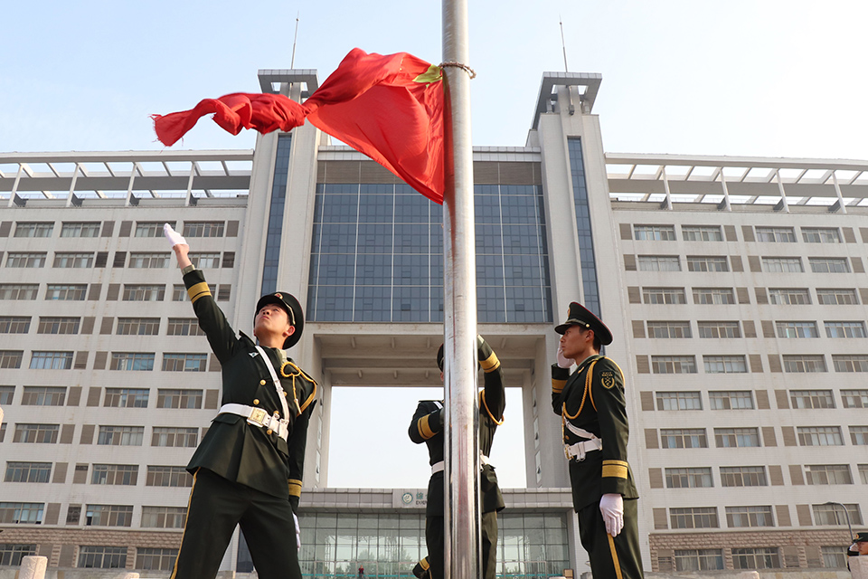 早上7时,国旗护卫队手擎国旗,迈着坚定的步伐,缓缓入场;伴随着激昂奋进的义勇军进行曲,在全体团员团干们的庄严注目中,五星红旗沐浴着朝阳冉冉升起。时代在发展,青年在奋进,五四青年精神如同五星红旗一般明艳瞩目,飘扬在代代中国青年心中。