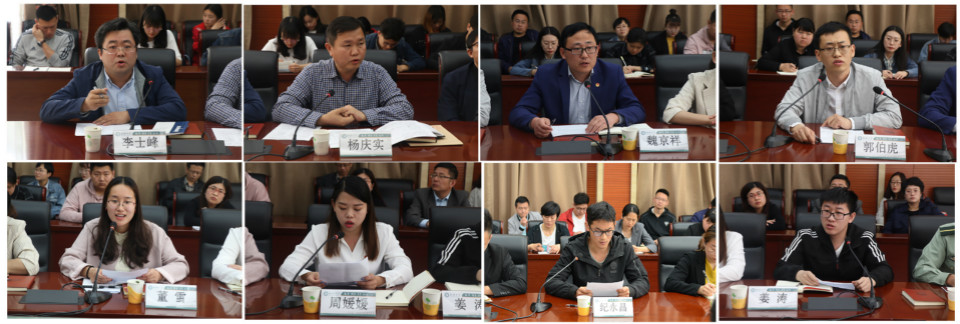 部分学院领导、青年教师、团干部、辅导员、青年学生代表等8位师生分别发言。马克思主义学院副院长李士峰提出要把五四运动的历史意义、五四精神的时代价值和习近平重要讲话精神融入到思政课课堂教学中,充分发挥课堂教学的主渠道作用,并表示学院将推动思政课教学与网络思政深度融合,强化课程考核的实践环节,进一步增强思政课的影响力。美术学院党总支副书记、副院长杨庆实围绕新时代对五四精神的继承与弘扬,提出了在内容上抓好结合、在载体上找准渠道、在主体上注重实际、在引领上强化研究、在途径上突出创新、在目的上重视效果六条建议。外国语学院团委书记魏京祥提出要精心策划好主题教育活动,组织开展好“挑战杯”、“创青春”以及其他各项学科竞赛等比赛,深入推进落实第二课堂成绩单制度,确保青年学生思想站位正确、基础知识坚实,助力青年学生全面发展。历史文化与旅游学院讲师郭伯虎通过对1919年巴黎和会史实的讲述,认为历史的细节饱含向上的精神力量,历史学中有极好的思想政治教育内容,把历史事实、历史细节真实地呈现给学生,就是很好的教育教学方法。物理科学与信息工程学院辅导员董雪谈了传承和发扬五四精神对辅导员工作的指导意义,并表示辅导员应勤奋学习,勇于创新,用真心和行动关爱学生。