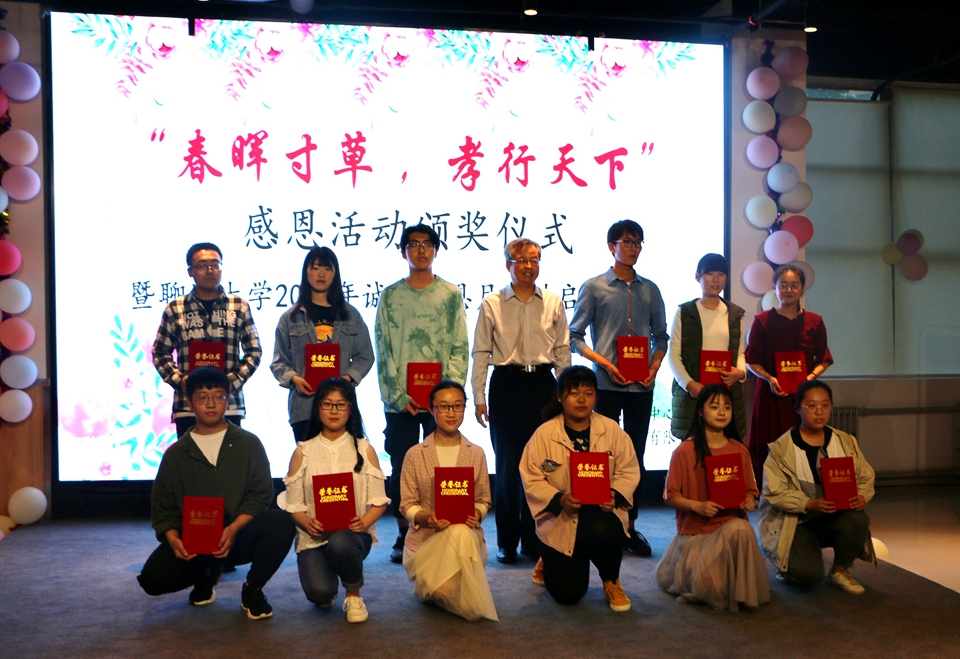 为弘扬中华优秀传统文化,传播主流孝行正能量,增强学生的感恩意识,促进家庭、校园和谐,社会进步,5月1日到12日,今年会开展了以“春晖寸草,孝行天下”为主题的感恩教育活动。5月12日晚,活动颁奖仪式暨诚信感恩活动月启动仪式在翰苑餐厅二楼举行。校党委常委、宣传部长乔丙武,学生工作部(处)长张乐方,泉润佰合集团公司总经理段树生,学生工作处、后勤服务中心相关负责人,各学院资助辅导员、获奖学生等参加活动。