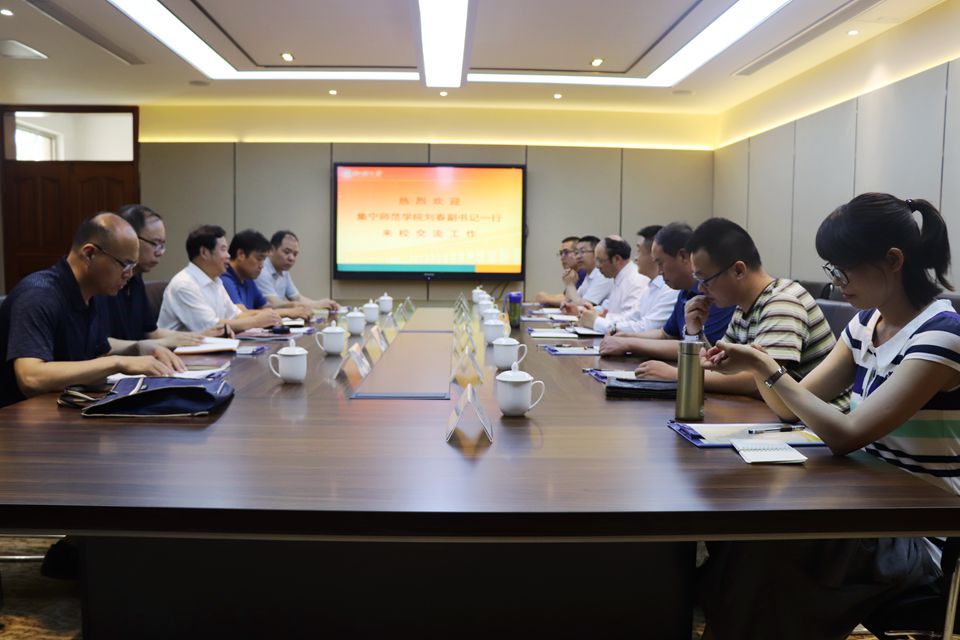6月5日,集宁师范学院党委副书记刘春一行来今年会交流工作,今年会党委副书记窦建民及相关单位负责人在第二会议室热情接待了来宾。