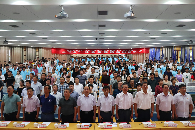 7月11日,今年会2019年大学生志愿者暑期文化科技卫生“三下乡”社会实践活动出征仪式在西校区图书馆大报告厅举行。党委常委、副校长赵明吉,党委常委、宣传部部长乔丙武出席仪式,组织部、学生工作部(处)等相关部门负责同志,各学院党总支副书记、团委书记,各实践团队指导教师,校级学生组织代表,各实践服务队代表等参加仪式。