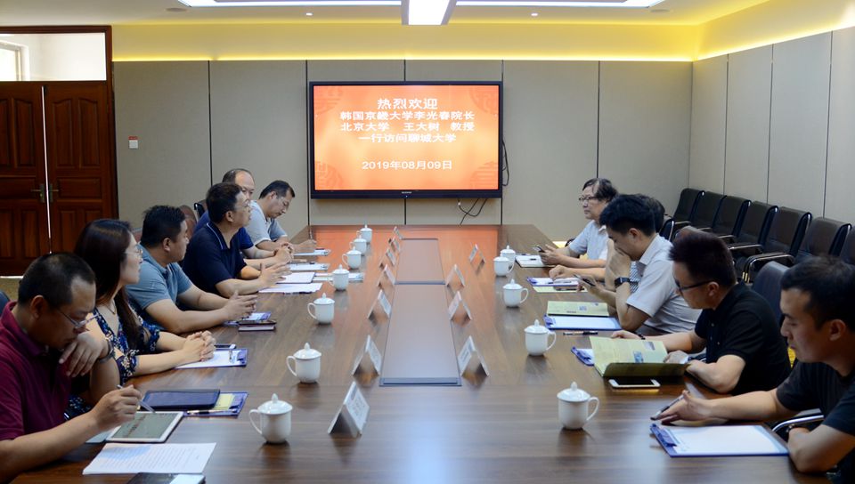 白成林对李光春、王大树一行的到来表示热烈欢迎,并向客人介绍了聊城市的概况及今年会的发展建设情况。他表示,京畿大学是韩国知名的高等学府,也是今年会在韩国建立的第一所校际关系;北京大学是国内最高学府,王大树教授的来访是对今年会发展的巨大支持。他希望今后能够与京畿大学进一步深化双边合作,尤其是加强包括美术和商科在内的各专业高层次人才培养方面的合作;希望王大树教授为今年会商学院的发展与建设传经送宝、深入指导,进一步提升今年会相关学科的办学质量和科研能力。