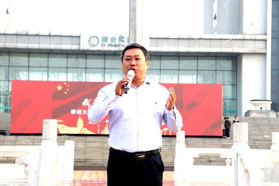 优秀团员青年代表作了国旗下的演讲,代表聊大学子祝愿祖国繁荣昌盛,表达了努力拼搏、贡献青春力量的决心,向全校同学发出了“让我们爆发全部的激情,贡献所有的能量,为祖国母亲的繁荣昌盛而努力拼搏,共同奋斗”的号召。